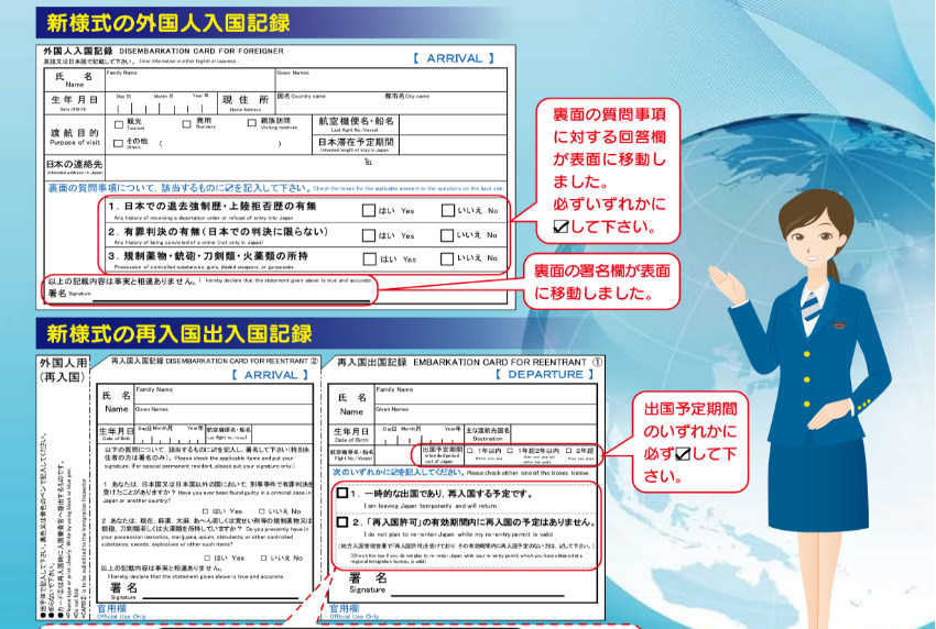 みなし再入国をする場合でも、何の手続きもなく自由に行き来できるということではなく、日本出国時に再入国出国記録(再入国EDカード:下記参照)上で、再入国する意思を表す欄にチェックを入れ、入国審査官に提示する必要があります。